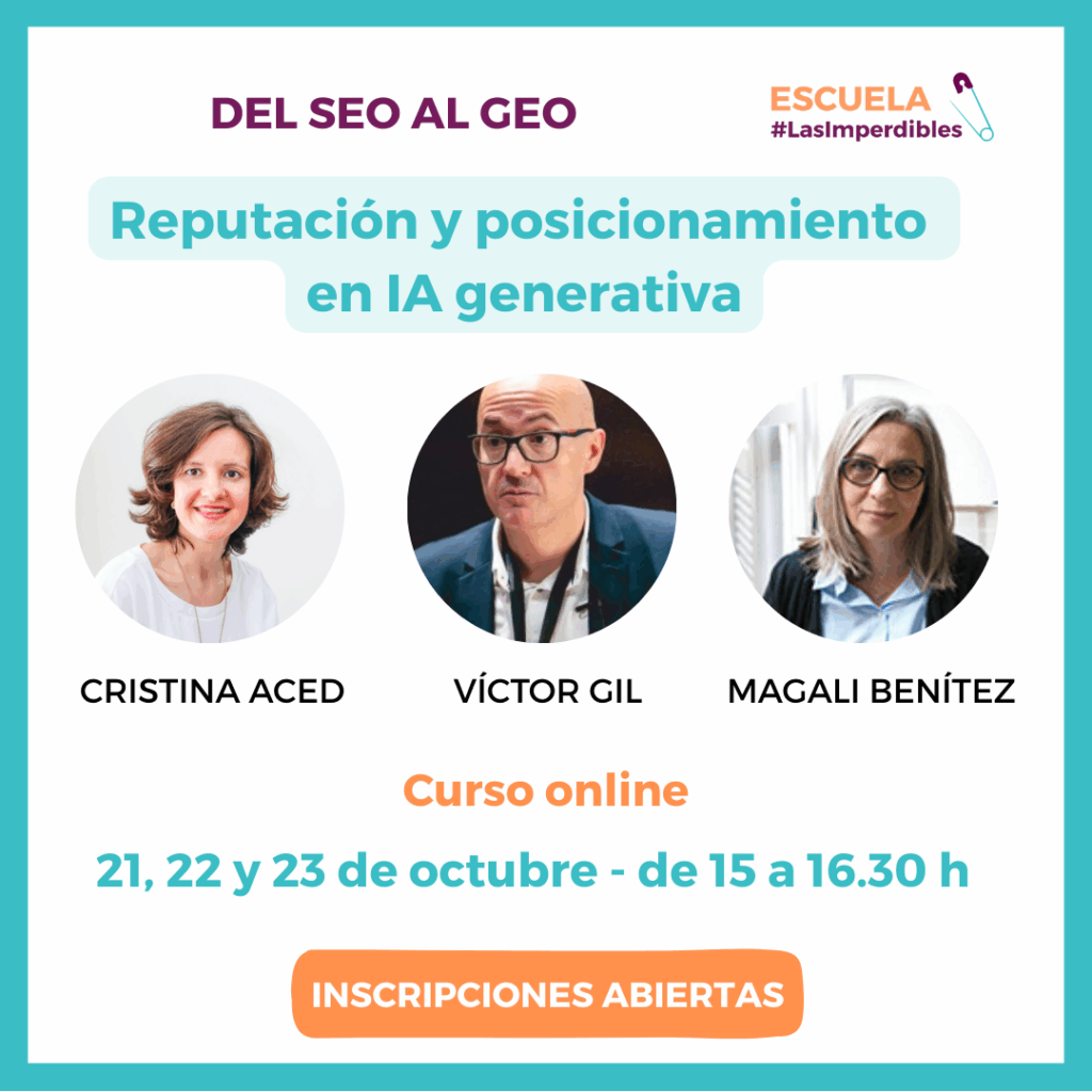 Reputación y posicionamiento en IA generativa: del SEO al GEO (curso online) Leer más »